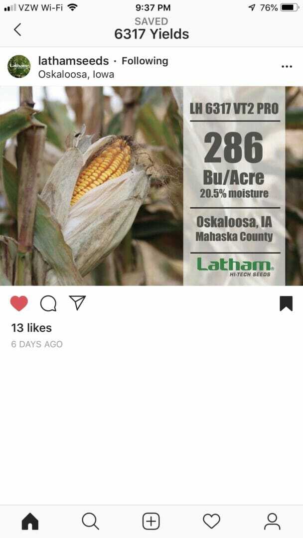 Latham customers have been pleasantly surprised this year with early harvest results. Check out this harvest result from Oskaloosa where drought conditions were experienced for the second year in a row.