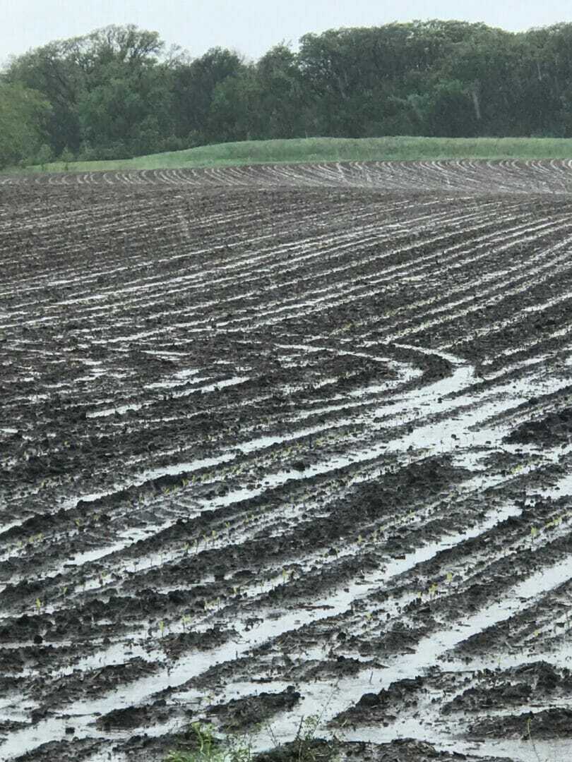 This no-till customer in Mitchell County, Iowa, was able to plant soybeans last Thursday. Quite a few farmers got seed in the ground last Monday through Thursday. Spotty rains fell Friday and Saturday, with rainfall totals ranging from 1.5 to 5 inches. Most area farmers finished planting corn last week and got a decent start on soybeans. Temperatures have been up and down these past few weeks, so some seed is struggling to emerge. We need warm and dry weather, so we can finish the 2019 planting season.