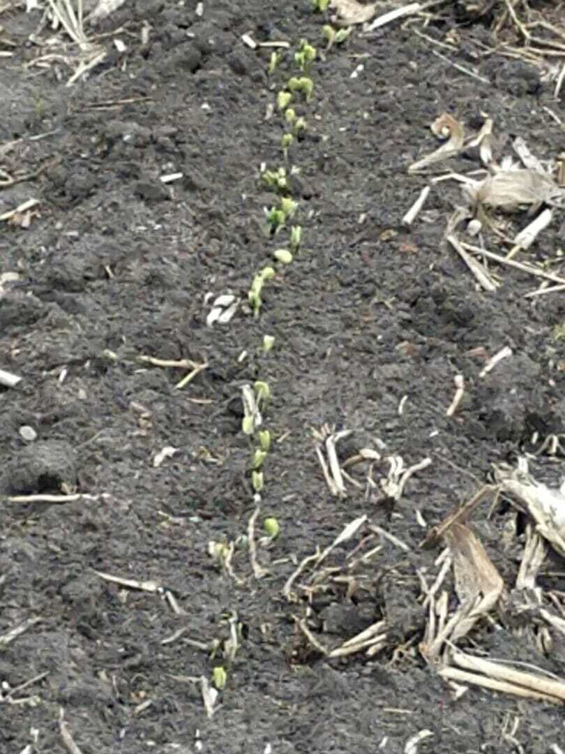 Seed that has been in the ground for three or more weeks is finally emerging. These acres are a little pale green, but the stands look fairly uniform given what they have been through. More rain in the forecast this week, but farmers remain hopeful for good conditions to finish planting this spring.