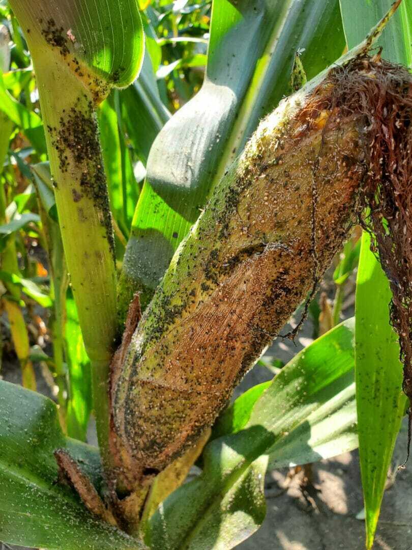 I saw a lot of corn aphids while scouting fields yesterday around Estherville, IA. Here’s a resource from Iowa State University on corn aphids: https://crops.extension.iastate.edu/cropnews/2016/08/managing-aphids-corn