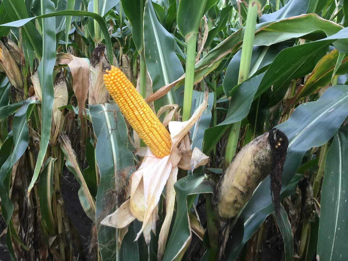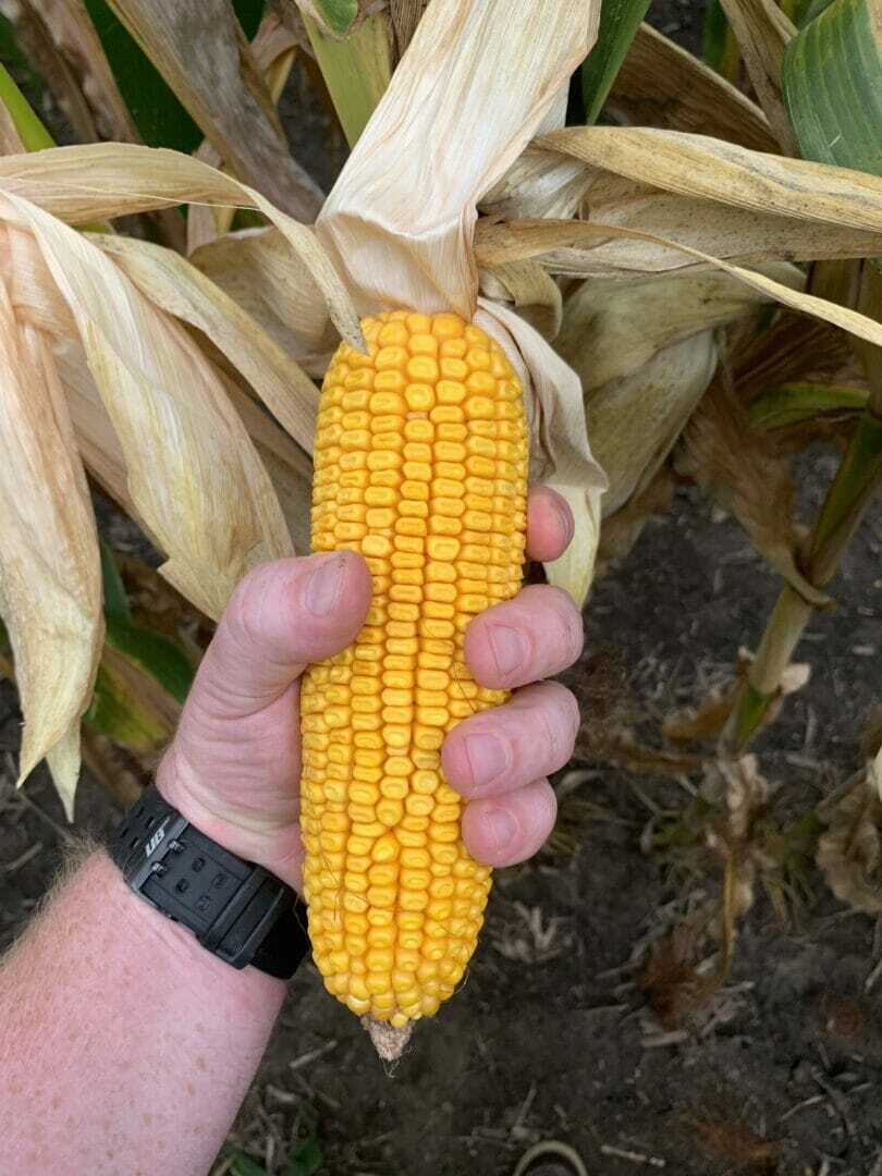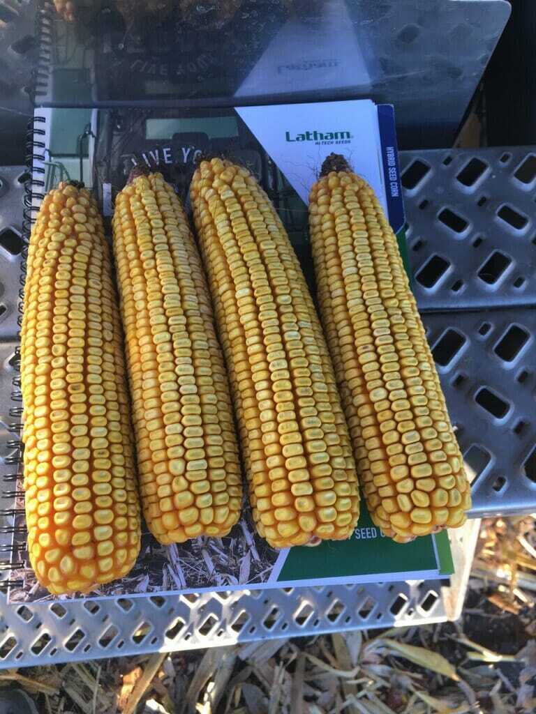 This field of LH 4437 VT2 PRO RIB, one of Latham’s exciting new hybrids with outstanding yield potential, is ready to harvest. This field was sprayed with a foliar fungicide and is to a week to 10 days earlier than the field of Latham LH 4454 that is across the road. Farmers who applied fungicide this season are really seeing a difference.