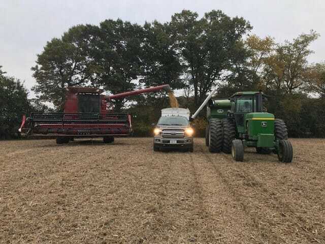 Now that the sun is shining again and a stiff breeze is blowing, corn harvest is once again underway. The weather forecast looks favorable for several days.