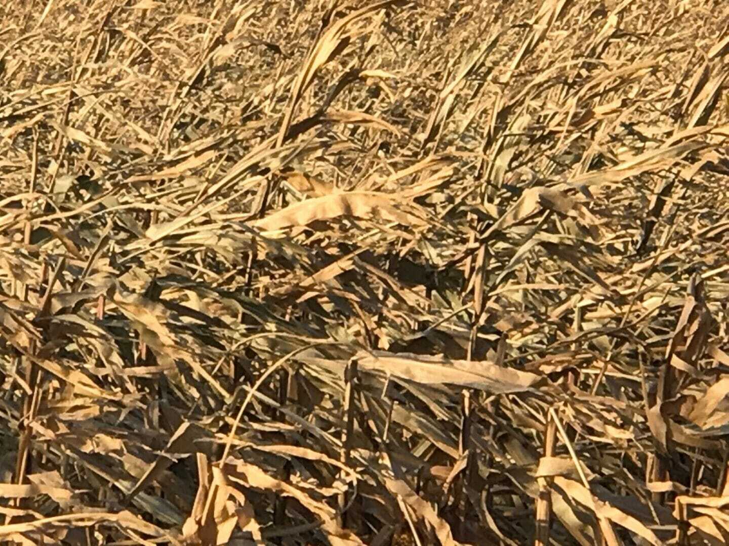 Strong winds have blown for the past three days, breaking almost all the tops out of the corn. It’s very easy to determine which way the wind came out off.