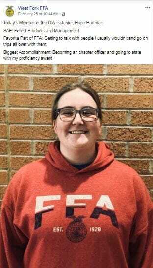 Hope is a great example of students finding their passion in AgEd and FFA. She was recently elected as chapter reporter.