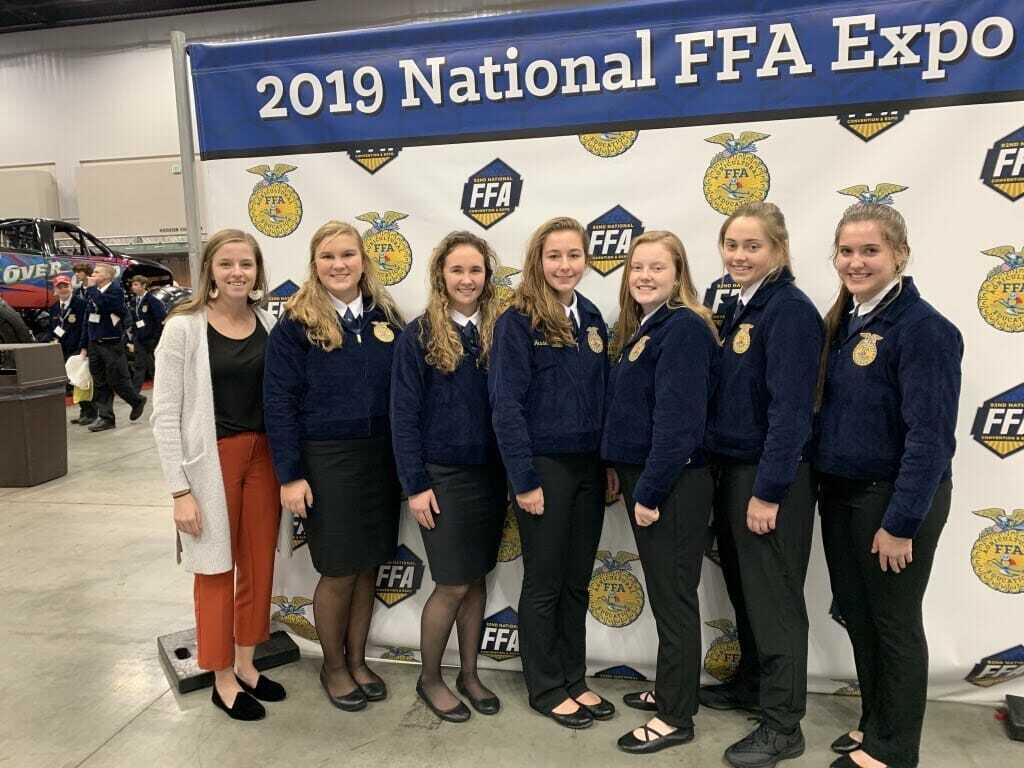 Those who were selected toured Fair Oaks Dairy on their way to national convention in Indianapolis. As part of the convention, they also took a Career Development Events tour that showed students what it looks like to compete in an FFA competition. They watched students competing in Agronomy, Floriculture, and Poultry Judging.