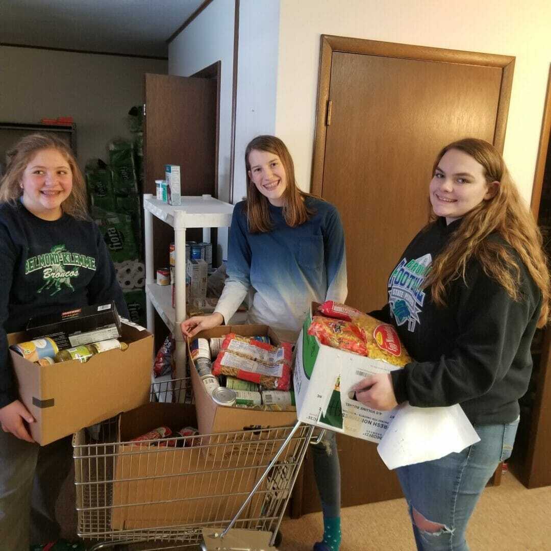 The B-K FFA Chapter is very active in helping its community. Each year it hosts a district-wide food drive during which approximately 2,500 items are donated to the local food pantry. This year the chapter also collected food items for boxes for families in our communities. Thanks to Iowa Select Farms, the B-K FFA was able to include pork loins for families in need. Chapter members delivered boxes to families in Belmond, Klemme, Rowan and Goodell.