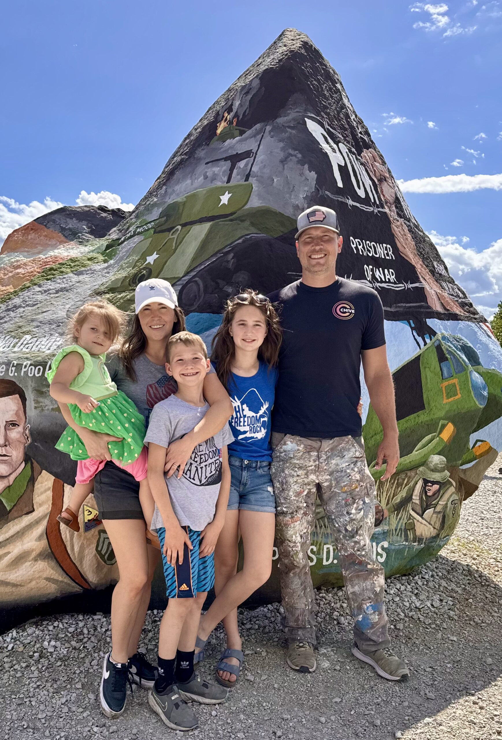 Although Sorensen paints a new tribute every year, he does not paint over the section of the rock that contains the veterans’ ashes. Repainting The (original) Freedom Rock annually is one way the Sorensen family pays respect to those who have served, encourages tourism across the state and instills patriotism in their children. Sorensen donates his time; supplies are either paid for out of his pocket or through The Freedom Rock store.