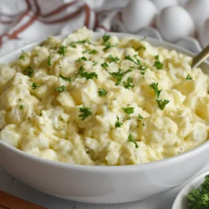 - Dice potatoes and eggs, but reserve 4 egg yolks for the dressing.