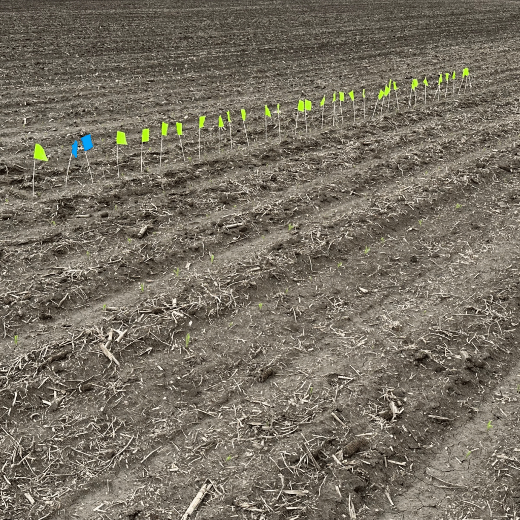 - Return to the field 24 hours later and mark the next group of emerged plants, using a different colored flag.