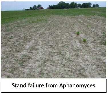 Aphanomyces Root Rot is a big word to describe a microscopic pathogen with the power to cause big problems. The fungus responsible, Aphanomyces euteiches, is an oomycete that is present in many Midwest soils. It’s especially prevalent in heavy, wet, poorly drained soils. The pathogen spreads by zoospores, which move easily in wet soils. Many years ago, scientists discovered two dominant races of this particular pathogen: Race 1 and Race 2. The latter proves more virulent or infectious. There is speculation of a “Race 3” although testing is still taking place.