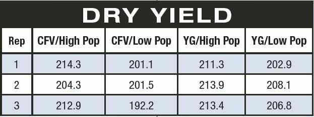 study.Seeding rates don’t always influence yield as expected because many of our hybrids have outstanding ear flex and the plant compensates for the additional space. Our planting rates were around 31,500 and 37,500 seeds per acre in our study, but weather greatly affected this. Several severe storms hit during the early growing season, and winds of 70+ mile-per-hour hit during the period of rapid growth for most of our corn. Corn fields throughout our area saw quite a bit of greensnap; the corn we planted 10 days later had no greensnap. Unfortunately, timing was not on our side. I took stand counts before harvest. Our final plant stands were 25,000 and 29,000 plants per acre (ppa) for the low and high seeding rates. We had approximately a 4,000-plant difference between the two seeding rates, which made a significant yield difference.