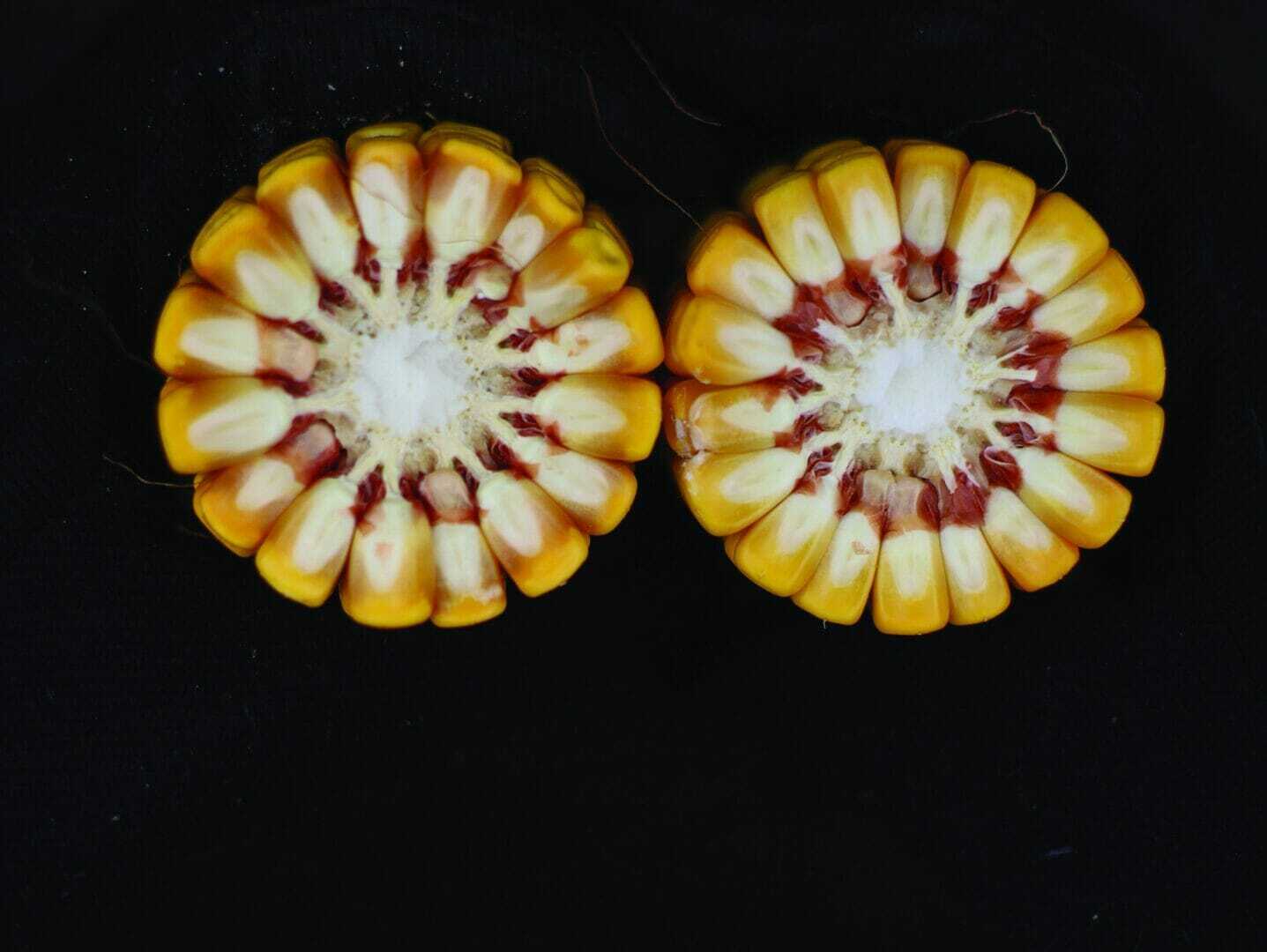 Cross Section split of LH 5245 VT2 PRO from Latham Hi‑Tech Seeds stress wheel research study 2018. Our nitrogen test didn’t show a yield difference despite the 35 additional pounds in our YG approach. Given the abnormally high amount of rainfall and above-average growing degree units (GDUs) for the season, we likely saw an increased grain-fill period and some additional loss of nitrogen through leaching. Above-average temperatures and good soil moisture means we also likely had higher mineralization rates, so the soil may have saved us because this particular soil organic matter is 5.0 percent.