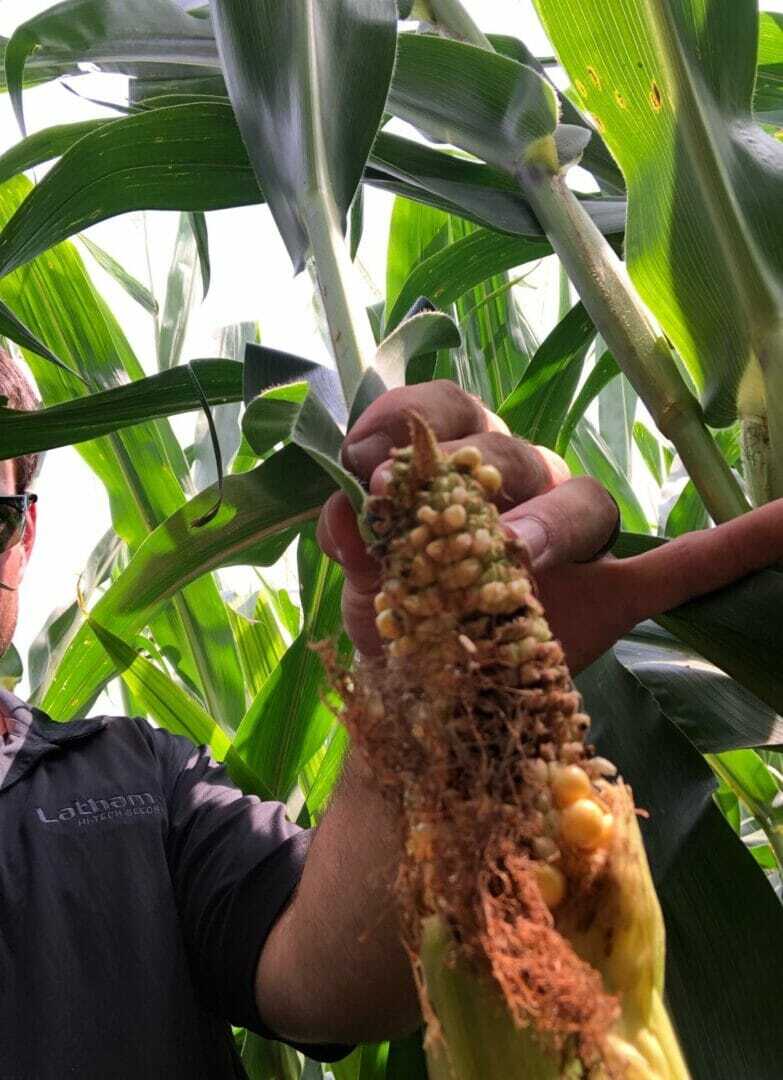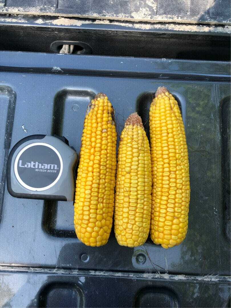 Good Golly Miss Molly! Latham’s 6317 VT2 PRO/DG is terrific corn. The ears are huge. I counted 20 kernels around ear with grass green stalks. This hybrid has great standability.