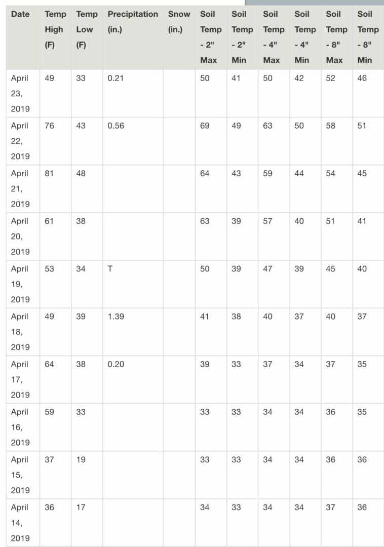 Farmers are trying to get the last of their corn in the ground. There was a very small planting window last week, and farmers throughout Central Iowa got rained out Monday evening. During the past week, some of the early planted corn has emerged. Some corn plants are tall enough to row, and the stand looks pretty good. With soil temps hovering around 46 to 47 degrees at 2 to 3 inches deep, crop development is slow. Heat units are about three weeks behind.