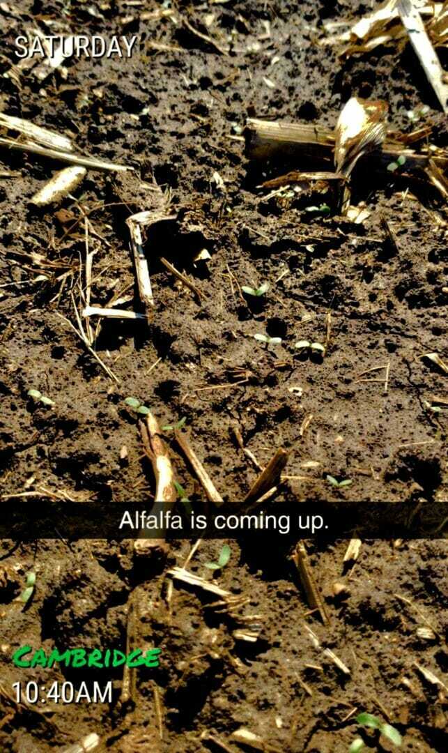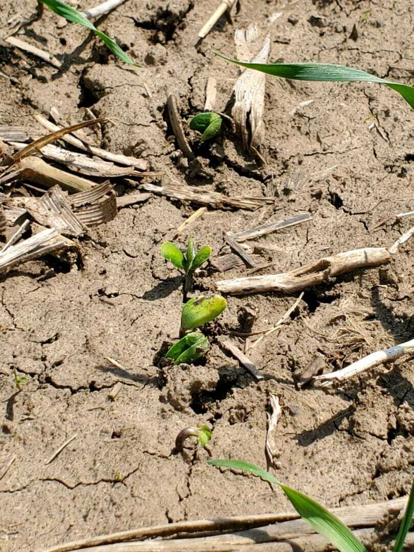 This field of L 1858 R2, which was planted April 21 near Odebolt, Iowa, is just popping out of the ground.