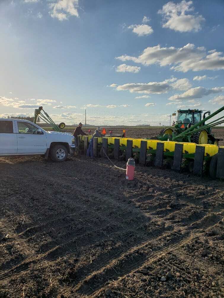 The weather cooperated on Monday, so we put in a corn test plot in Oshkosh. We’re hoping for a good week of field work, so we can make a lot of progress on corn. The first corn fields that were planted have yet to emerge, and seed has been laying in the ground for three weeks now.