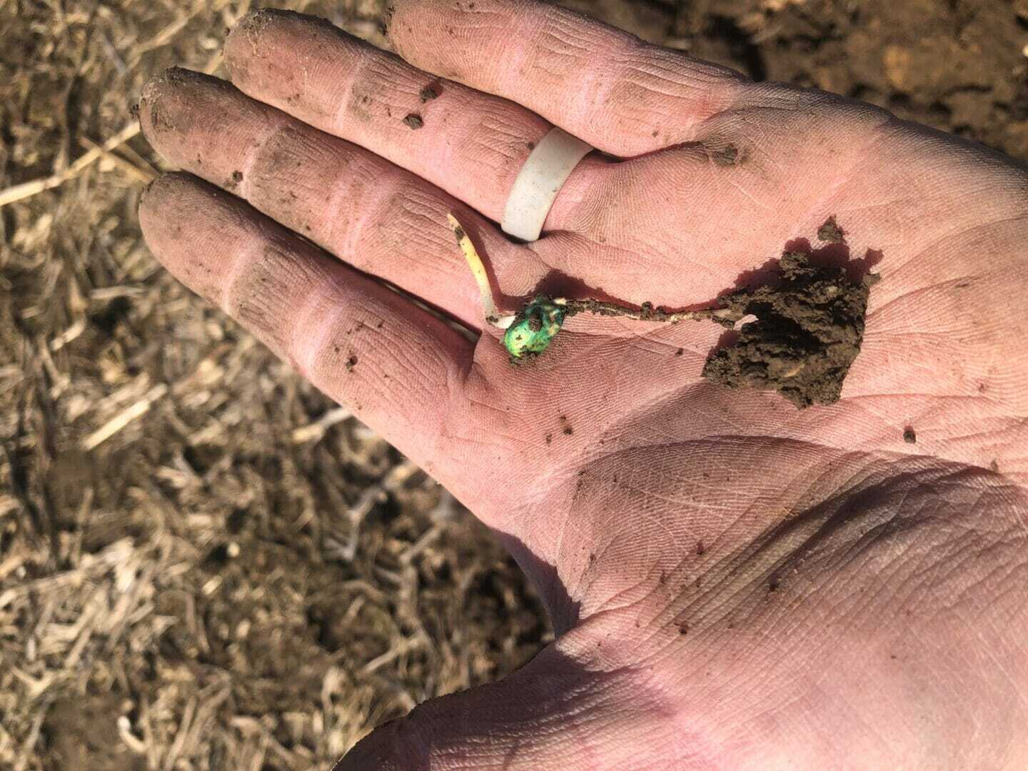 It’s important to get out of the cab and check planting depth. Two major problems can result from planting too deep: delayed emergence and uneven stands. Corn seed that is planted too shallow can lead to rootless corn syndrome, which causes corn plants to fall over due to poor nodal root development.