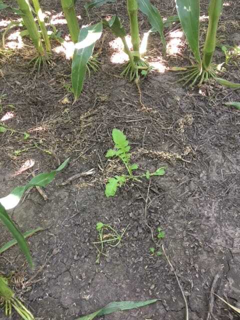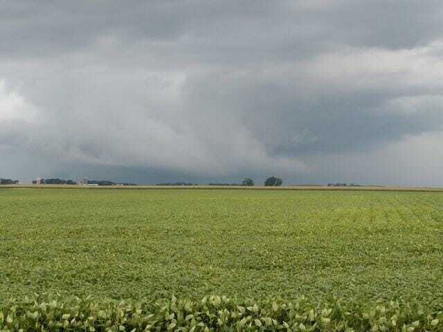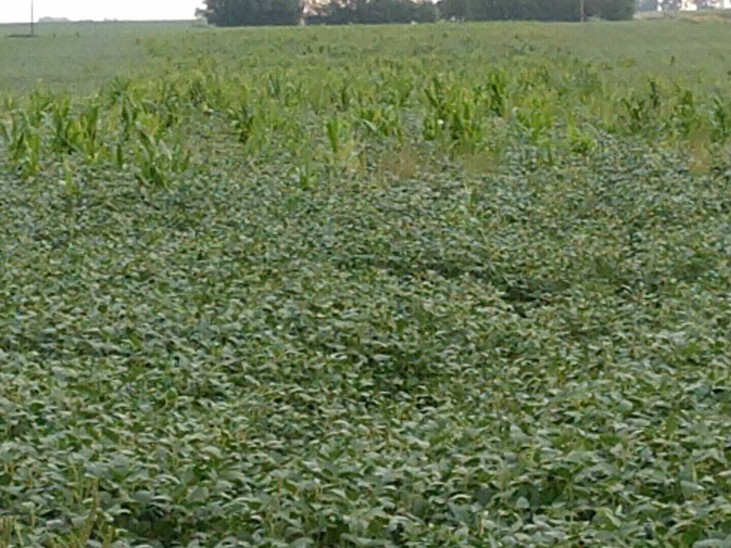This photo of a wind-damaged field near Algona, Iowa, serves as a reminder to keep checking corn fields for stalk issues.