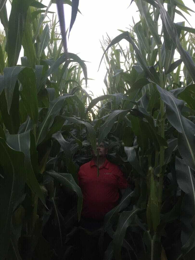 One of our customers is pictured in a field of LH 5495 3122 EZR. This 104-day hybrid I was planted May 26 and is testing 26% moisture.