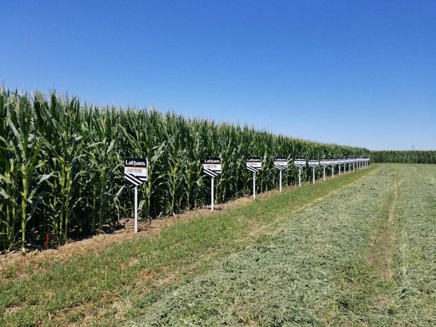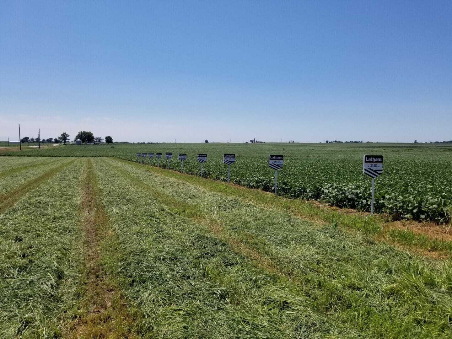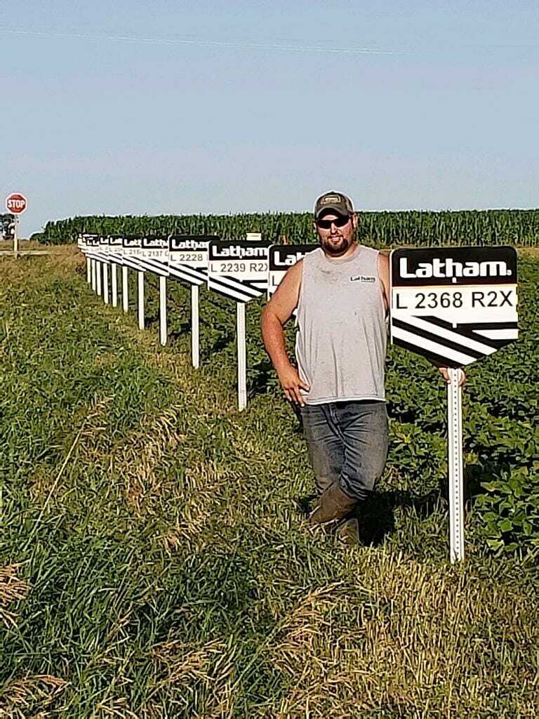 Latham® Dealers are busy putting signs in corn and soybean SuperStrip plots.