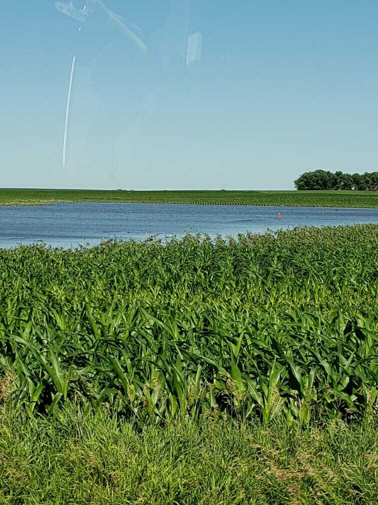 Wind storms on June 28 reached 60+ mile an hour in areas, causing this corn field (not planted to Latham) in Indianola to green snap in a large part of the field. Ponding is greatly damaged corn and soybeans fields in the central region. Ten inches of rain fell Saturday in Ankeny from 5:00 PM to 2:00 AM. What a crazy year!