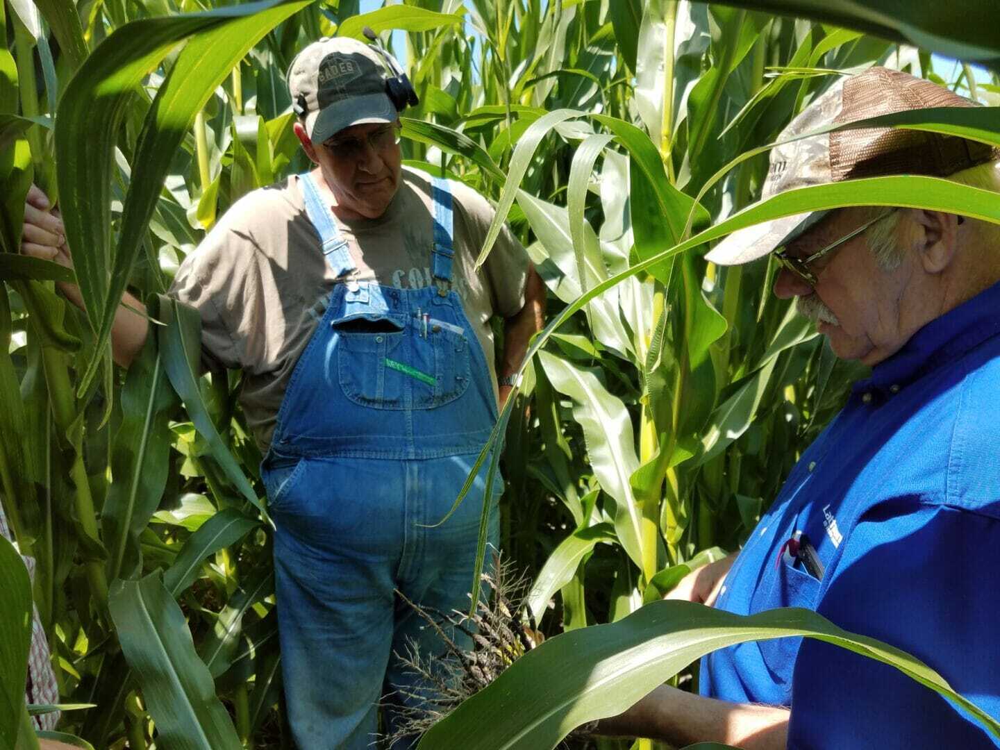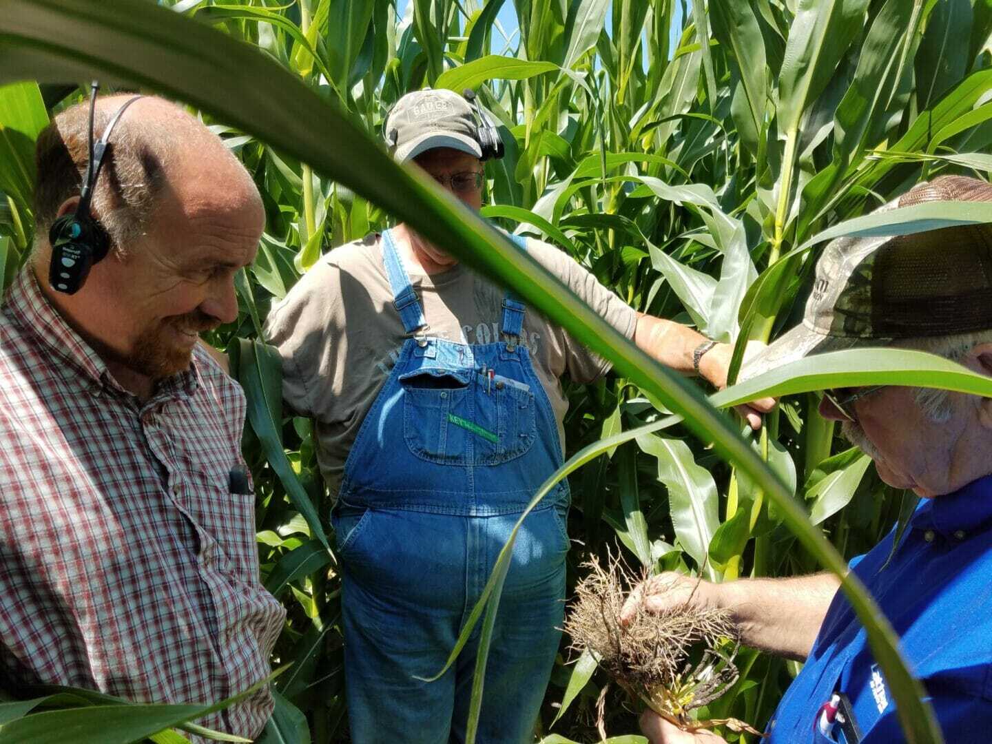 Gary Geske conducts a root dig for Latham® Dealer Steve Gades and one of his customers from Morris, Minn. It’s important to evaluate corn root worm pressure in fields and start making plans for 2019 seed needs.