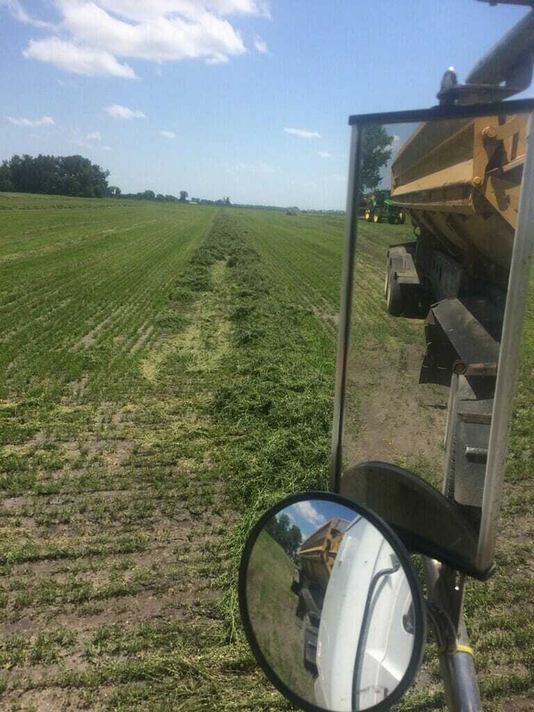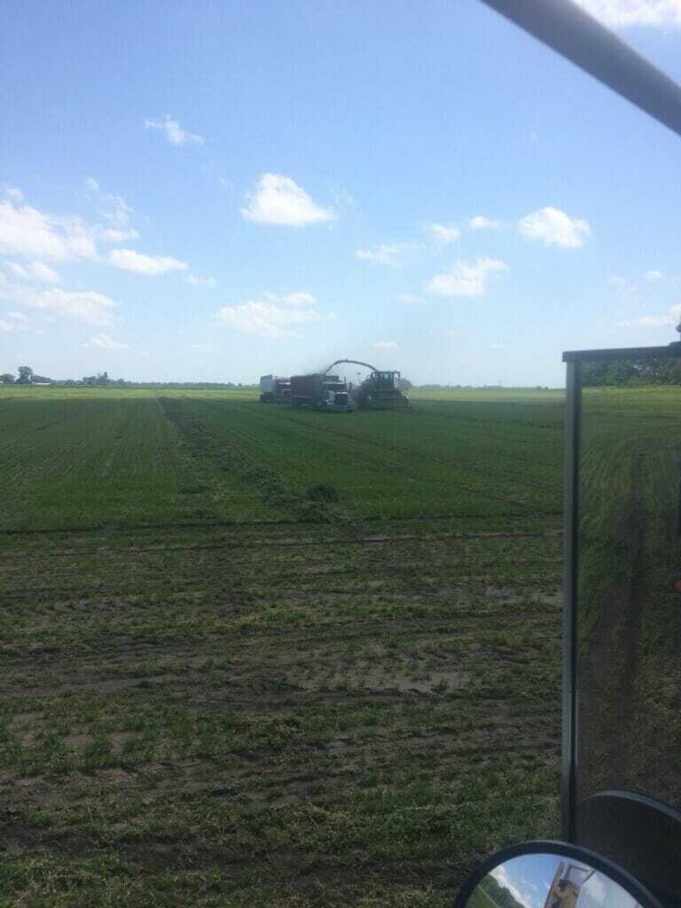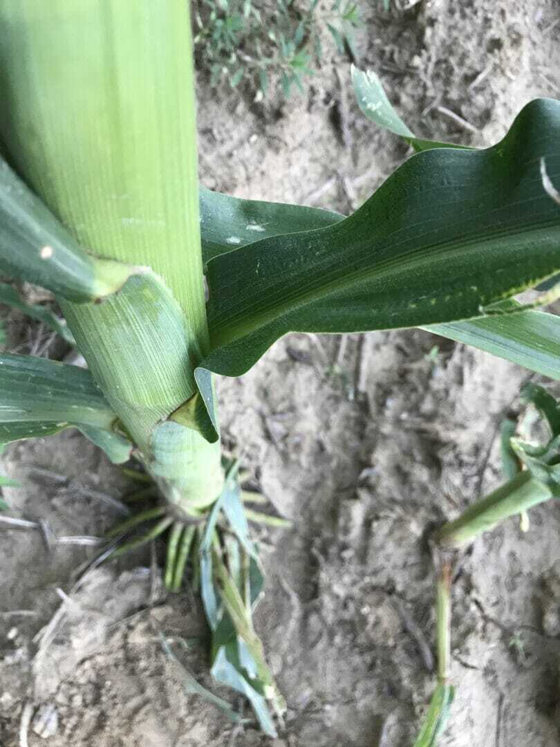 A shift in the forecast has brought us back to normal temperatures with chances of rain all week. This week many farms in Southeast South Dakota (SESD) got some much needed rain while others received way too much. Some areas are forecast to receive as much as 5 inches, and farmers in those areas are still trying to get crop in the ground. On the brighter side, many crops are looking fantastic. Most corn fields are taller than knee high and canopied. Also this week, we saw a lot of hay/alfalfa down and picked back up. Because we missed getting a late frost and received great moisture early this spring, the first cuttings are awesome! Many soybean fields are starting to look pretty. Notice the white flash in the corn. It’s just cosmetic and was likely caused from chemical coupled with hot weather that caused the plants to grow really quickly. I have seen many fields with flashing throughout the state. The good news is that it’s not yield robbing.