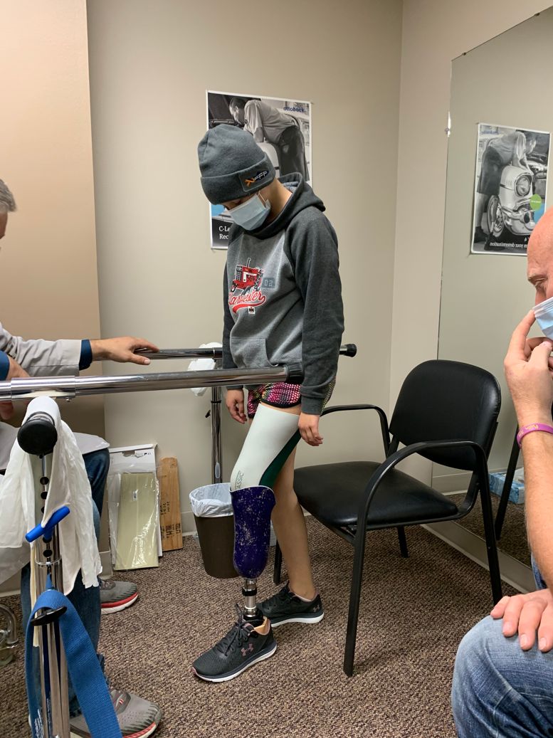 One answered prayer was finding a physical therapist within driving distance who could help Jewel gain strength and learn to walk on her prosthetic leg.