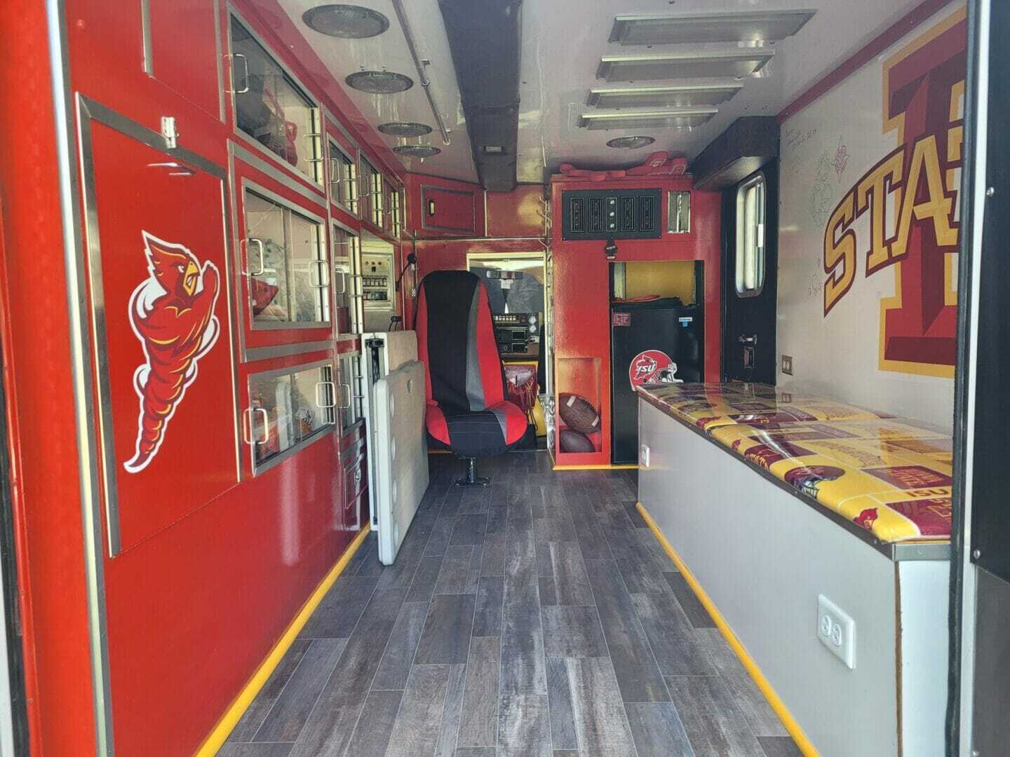 “One of my cousins lives in Ames, so we take the ambulance down to her place for the season. On Game Day, our family and my cousin’s family all pile into the ambulance and head to the tailgate,” says Sean. “The ambulance has made tailgating so much more enjoyable because it stores all of our equipment. We don’t have to hassle with unloading tables, chairs, a tent and grill once we get home.”
