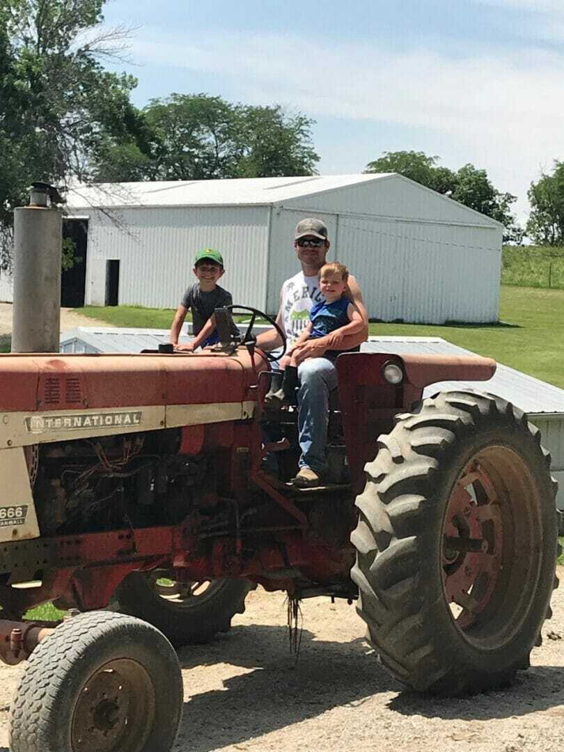 Aaron and Cory want to raise their three sons like they were raised. Cory grew up in Central Iowa near Garwin where her parents and her brother are the fourth and fifth generations, respectively, to farm that land. When Aaron was growing up, his grandpa and his dad raised corn and soybean in rotation. They grew alfalfa to provide forage for the family’s cow-calf operation. Aaron and his siblings also had 4-H feeder cattle projects.