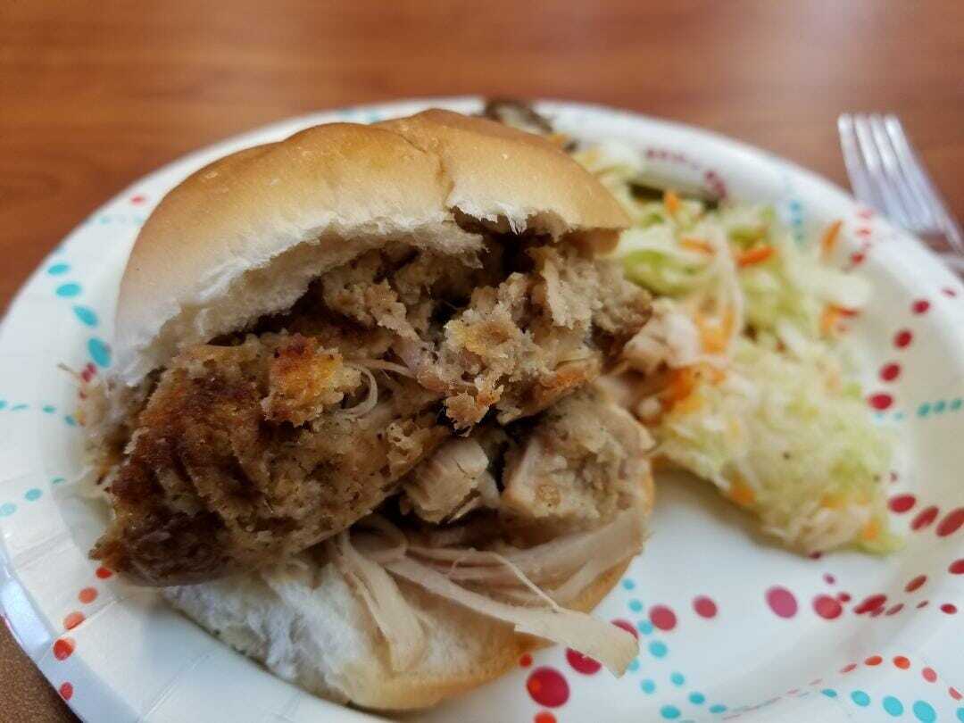 We’re talking about and dressing sandwiches—a flavorful mixture of turkey, gravy and stuffing mixed together and served in a bun. Yes, these are starch on starch with plenty of turkey mixed in for good measure. No, they aren’t hot turkey sandwiches, where gravy is poured over a sandwich stuffed with sliced turkey. These are a food all their own, and they are a cult classic around Dubuque, Iowa.