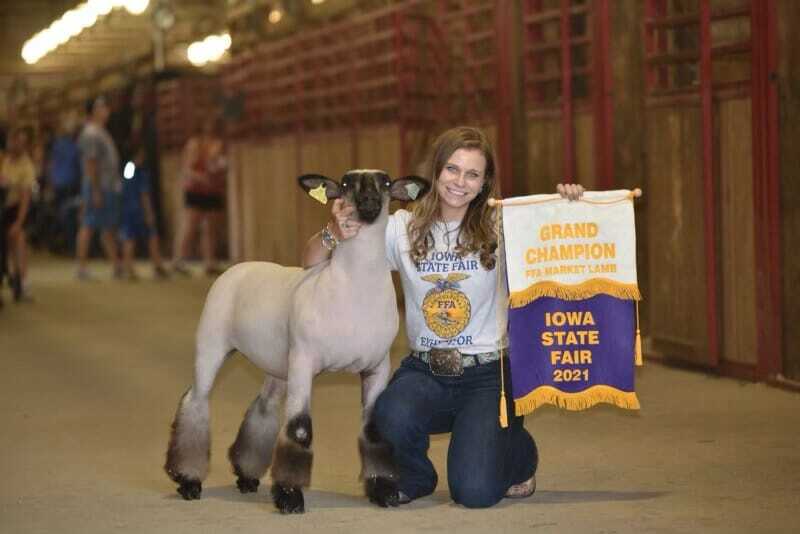 It was another record-breaking weekend at the Iowa State Fair as the 2021 Sale of Champions set a record by raising more than $445,000 for scholarships! The Sale of Champions also broke four records for the highest selling species. The Grand Champion FFA Market Lamb, exhibited by Phoebe Sanders of Eagle Grove, set a new sheep record at $18,500.