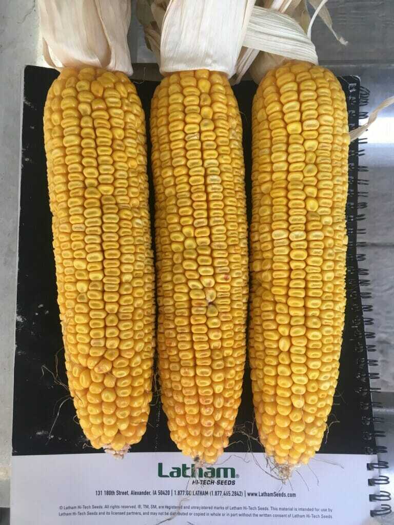 Good Golly Miss Molly! Latham’s 6317 VT2 PRO/DG is terrific corn. The ears are huge. I counted 20 kernels around ear with grass green stalks. This hybrid has great standability.