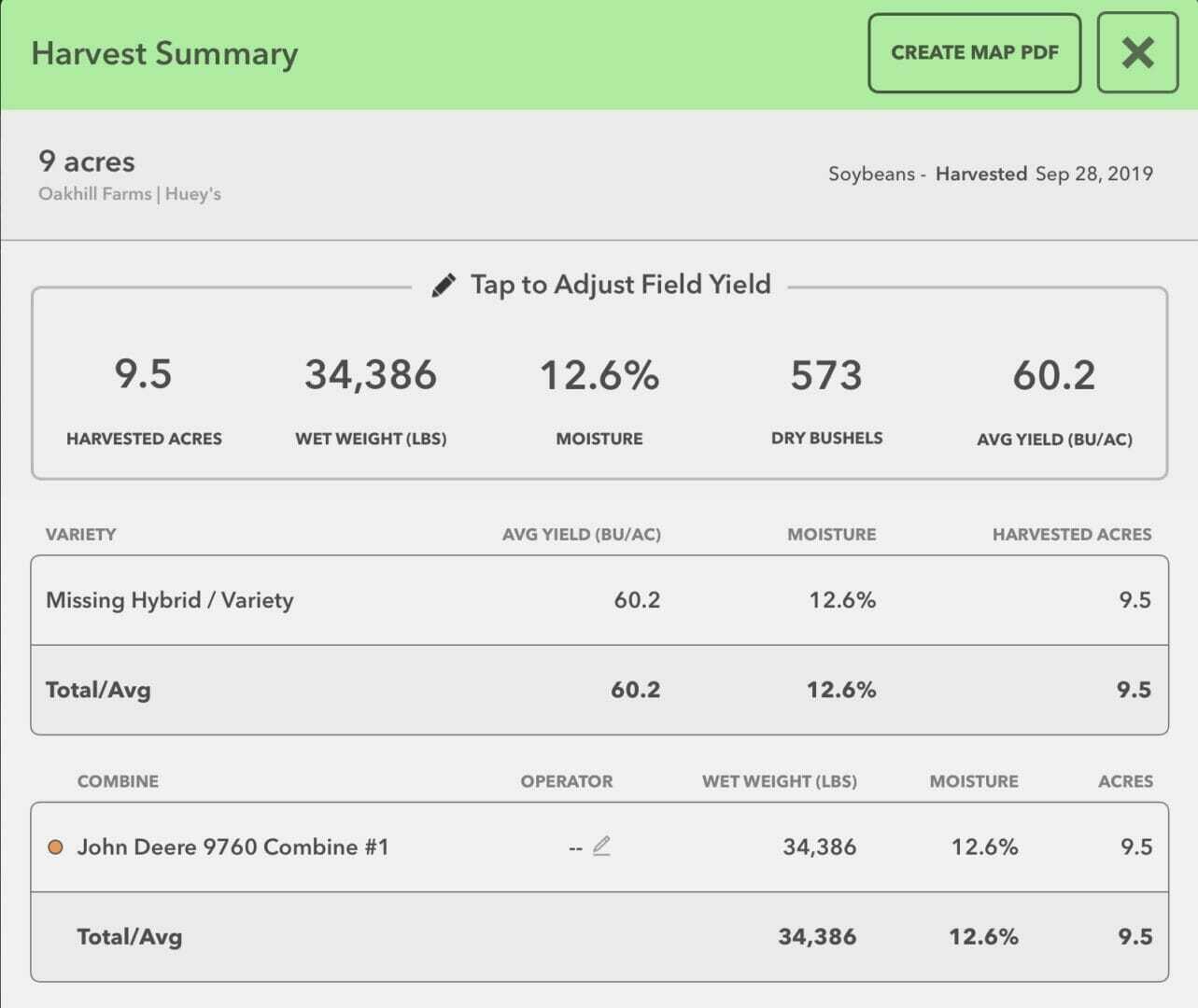 We were blessed with a couple days of sunshine before the next storm, so some soybeans got harvested. Harvest moistures are ranging from 14 to 20 percent. Yields are quite variable due to all the drowned-out areas and uneven harvest conditions.