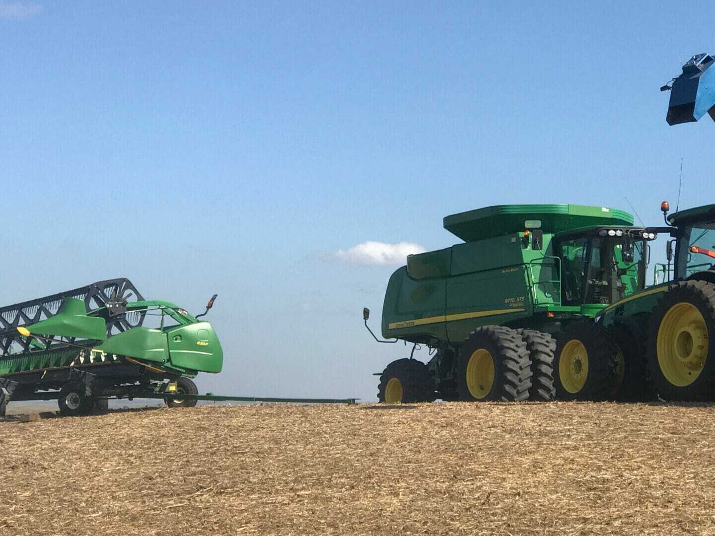 Combines are starting to roll again in Eastern Iowa. Farmers here are harvesting both corn and soybeans.