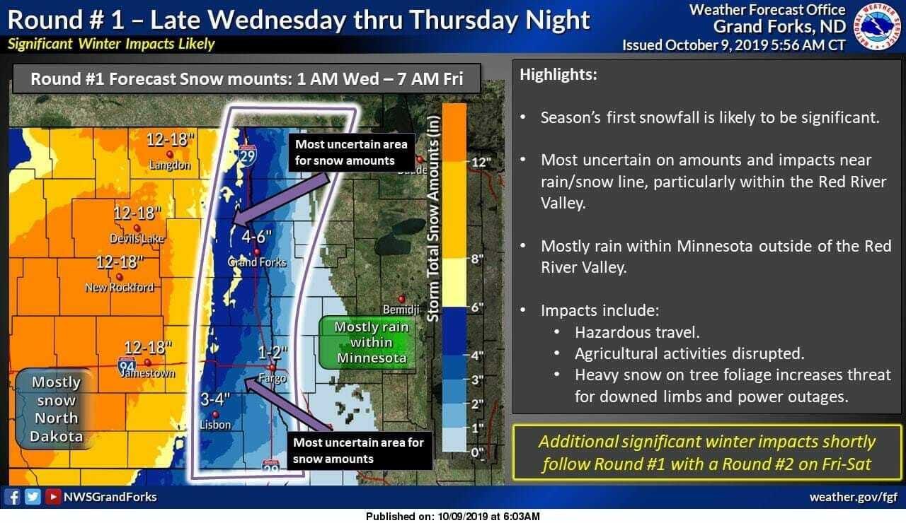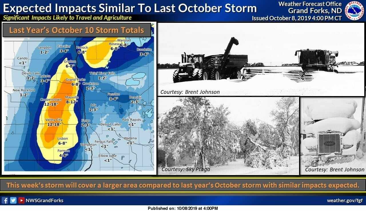 A number of Northeast South Dakota farmers started soybean harvest this week. Moistures are still fairly high, but a major snowstorm is expected here mid-week. Many soybeans are close to being ready but still need a few nice days to ripen enough to combine. The snowstorm will bring an end to our growing season as the forecasted low is 26 degrees Fahrenheit. Everyone hopes this forecast is wrong as there is still a lot of corn that has not black layered. Yield losses look to range from 0 to 15%.