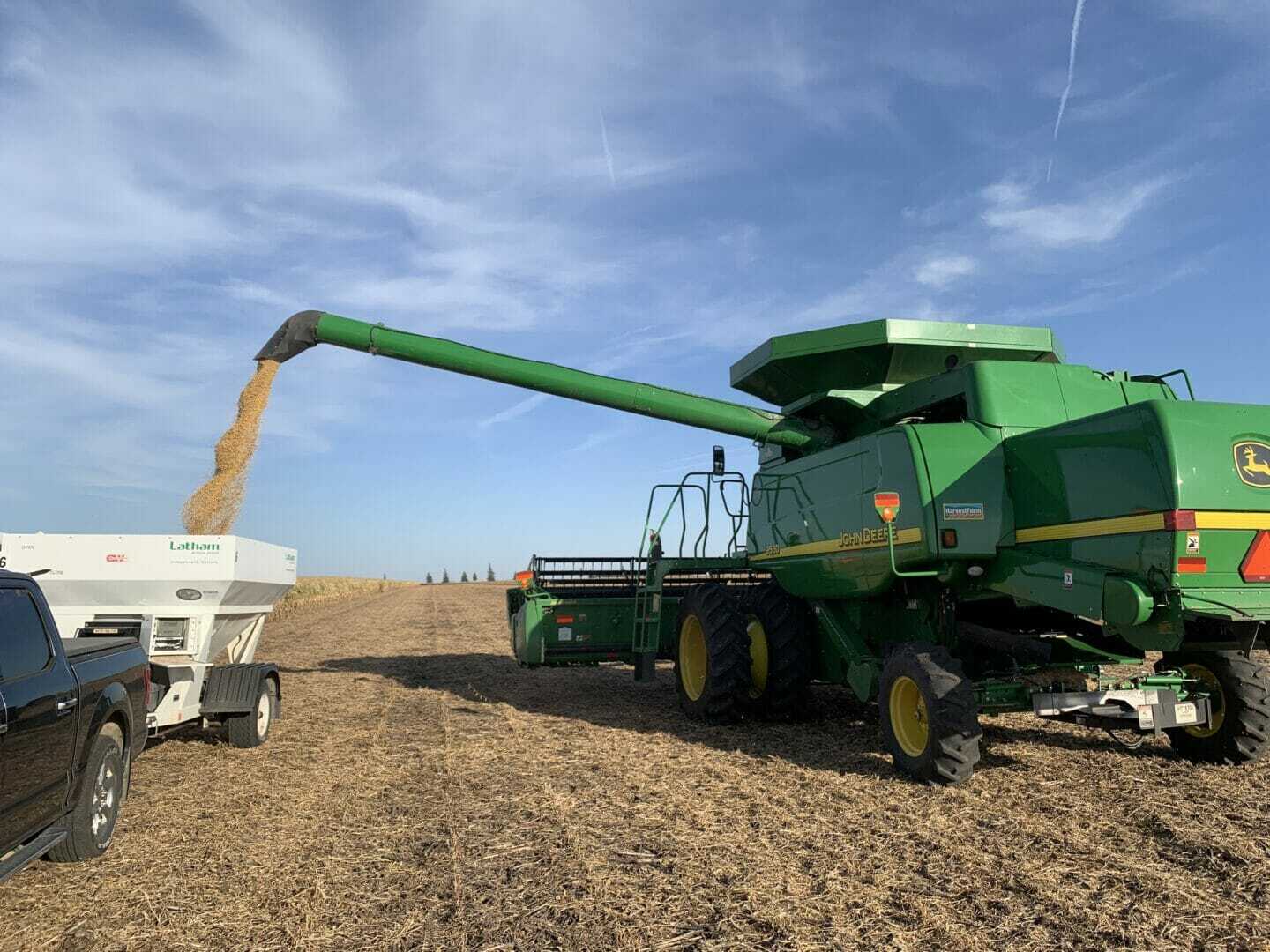 It’s been a busy couple of days in Southern Minnesota are farmers harvest as many acres as possible while the weather holds. With warmer temps and windy days, many soybean fields have become fit to harvest.