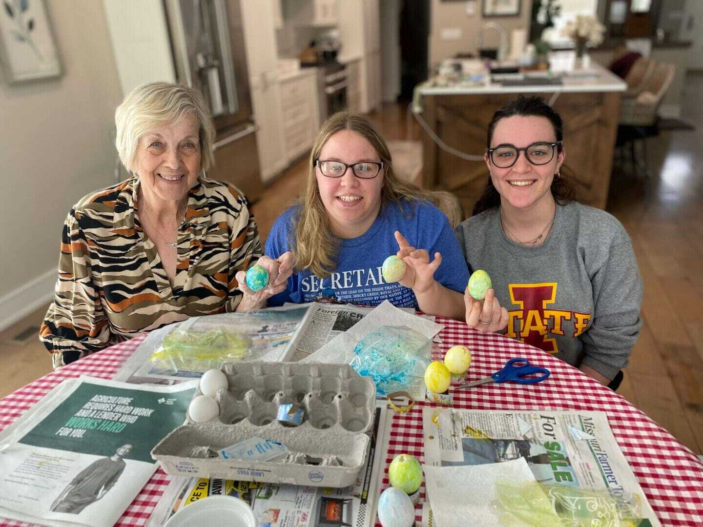 In years’ past, we dyed hard-boiled eggs that were then turned into my mom’s legendary potato salad. I remember standing on a kitchen chair as a little girl, so I could reach the kitchen counter where Mom would help me make an Easter bunny cake. Another one of my favorite memories is when a live bunny was left in my Easter basket.