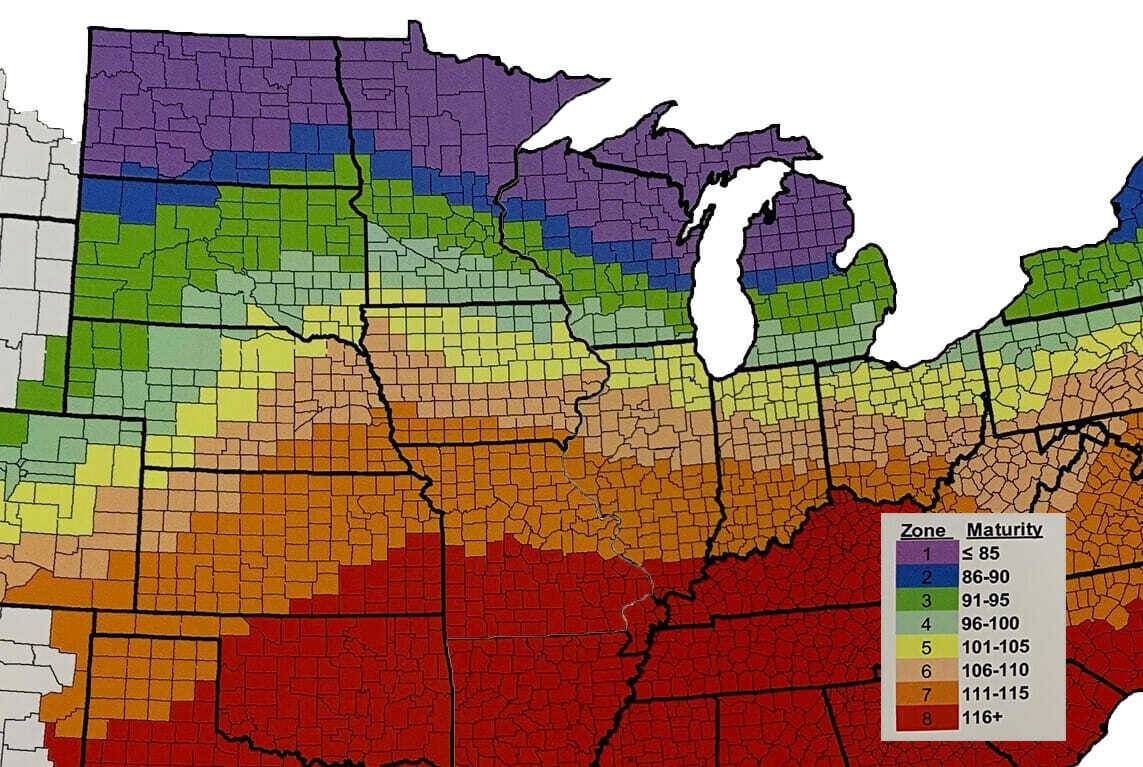 That brings us to the next subject… if you must switch, how early of a hybrid is needed? You don’t need to take it to extreme and switch from 109 RM to an 85-day hybrid or something equally silly! Research has proven that it pays to stay closer to your “normal” maturity. Switch to hybrids that are about 5 to 7 relative maturity units earlier than full season for the region. Yields in this scenario will be greatly improved if northern Iowa and southern Minnesota farmers (from the example above) move toward a 92- to 95-day hybrid that is more closely adapted to the area.