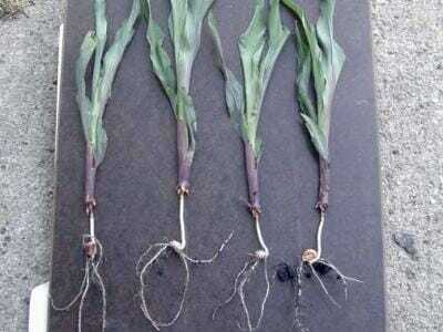 Credit: Iowa State University Rootless corn syndrome is a disorder, often a result of hot and dry soil surfaces and planting into dry soil. With rootless corn syndrome, the nodal roots will fail to attach to the soil. Nodal roots are essential conduits for transporting water and nutrients to corn plants. Their absence is highly consequential for the quality of stand and overall yield outcomes.